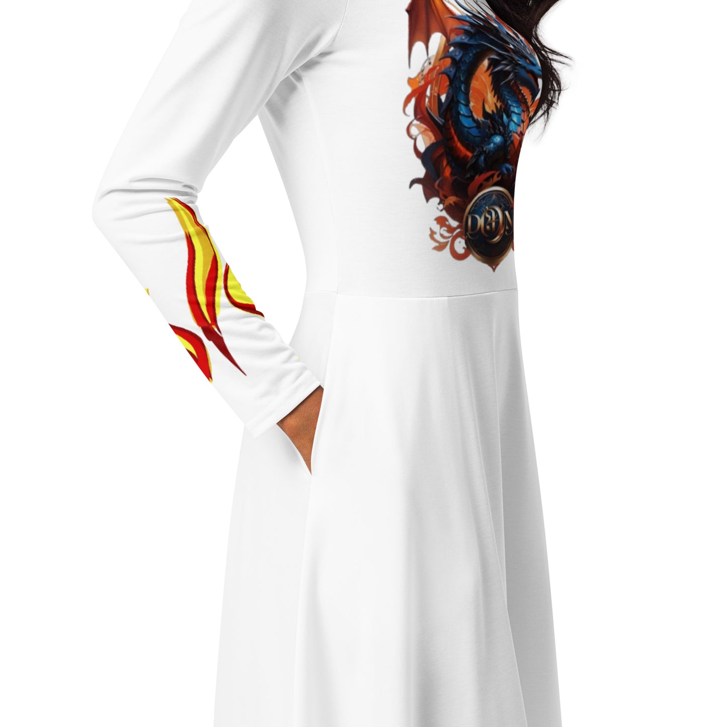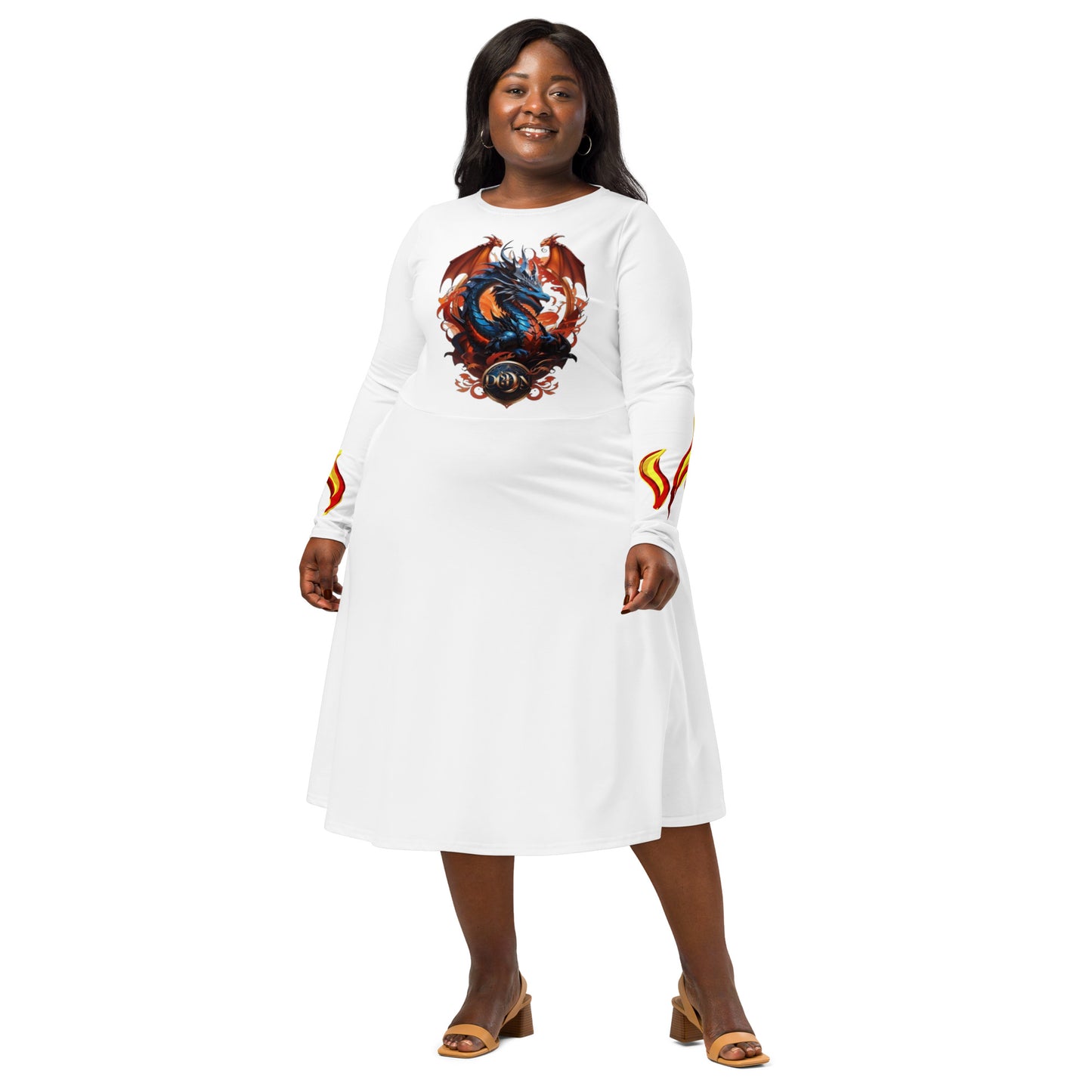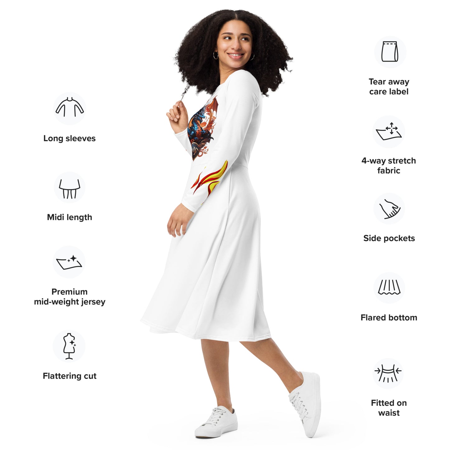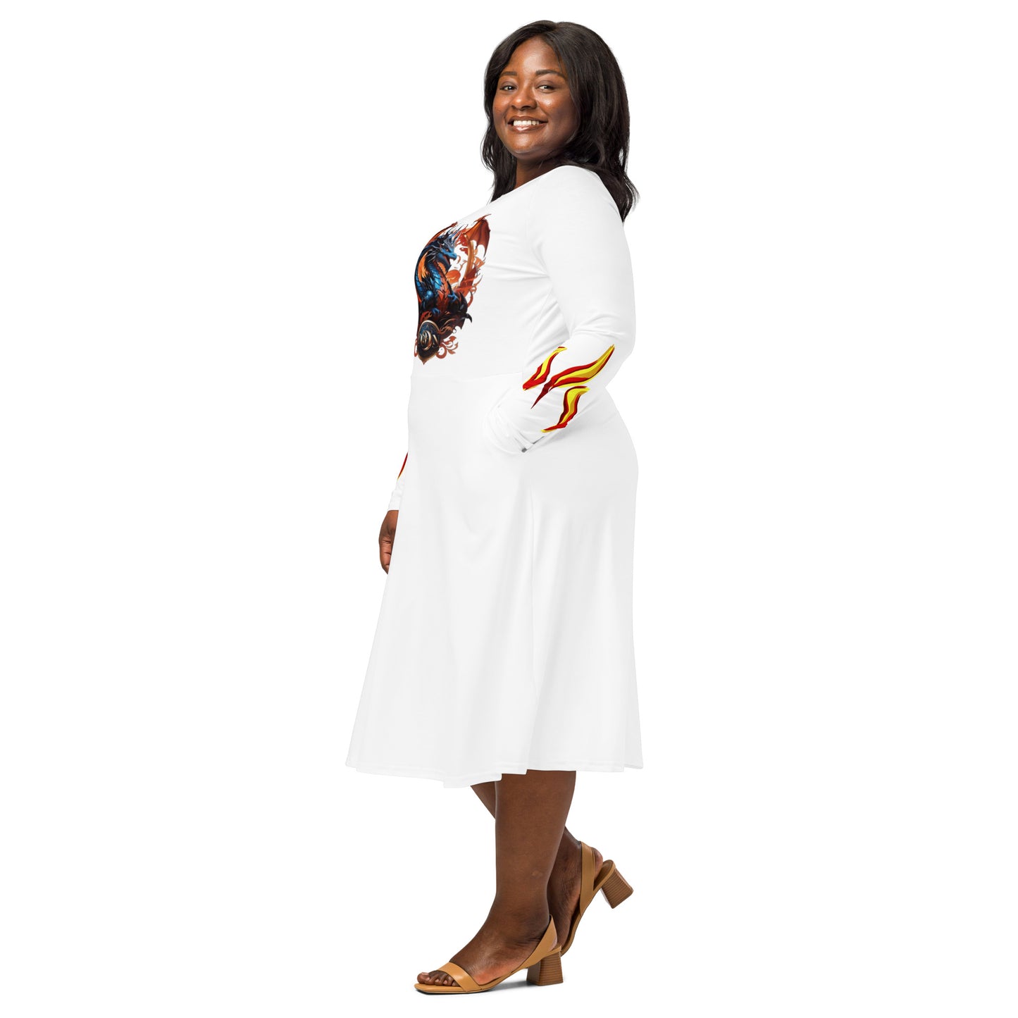 All-over print long sleeve midi dress
